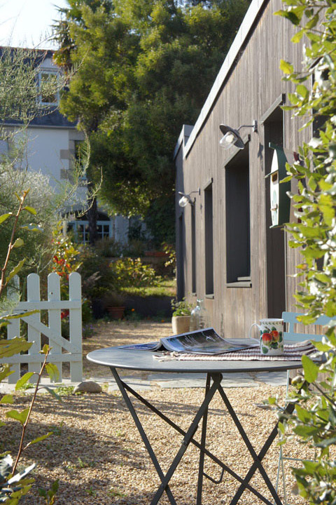 Profitez d'une cour privée gravillonée (50m²) et d'une terrasse privative (9m²) où vous pourrez prendre vos repas. Prélassez-vous également dans les fauteuils Adirondack en bois tout en regardant la mer.
